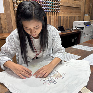特色白印刷により、黒や紺など色調の暗いTシャツにも映えるデザインへの対応が可能になりました。店舗内でサービスを完結できるため、短期滞在の観光客からのオーダーも増えています。Tシャツプリントというお客様向けサービスだけでなく、店内販促物も印刷できるようになりました。