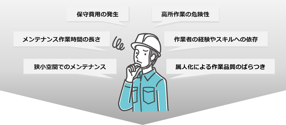 経済的なメリット ● 人の手で行っていた潤滑保全を自動化し、省人化が可能です。 ● 機械の寿命が延び、取替え費用を大幅に抑制できます。 ● 車輪、レールなどの取替えを減らす回数を減らし、生産停止日数を減らせます。 |