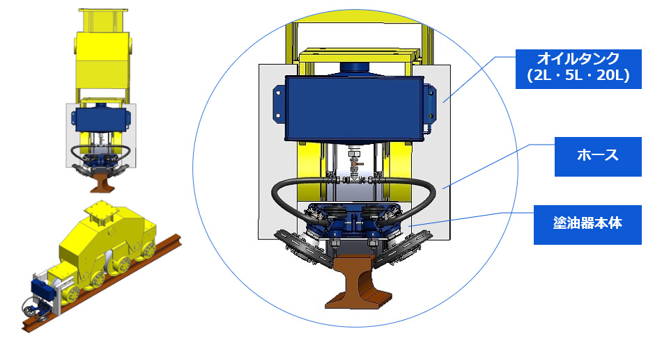 ■ | レール両側面に同時に塗油するため、取付数が少なくて済み、管理が容易です。 |