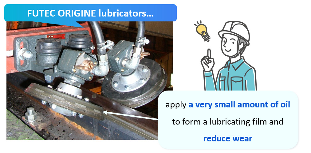 Economical benefits ● The lubrication/maintenance operation used to be performed manually is automated to save manpower. ● The lubricator extends the life of the machine, substantially reducing the replacement cost. ● The lubricator reduces the frequency of replacing wheels and rails, etc., decreasing the downtime. |