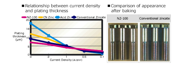 ・ใช้Znความเข้มข้นสูง high Zn (g/L)、ใช้ไฟชุบสูง ( high A/dm2 )、High-speed plating due to high temperature ชุบที่อุณหภูมิสูง(0.4 µm/min or more)