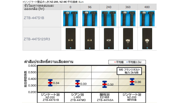 ■ ZTB-447 Corrosion resistance test results by salt spray test |