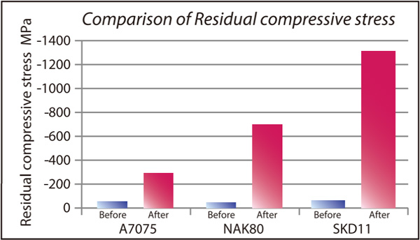 A unique air blasting technology "α-processing" creates "Nano crystal" that is much finer than the crystal created by conventional fine particle shot peening. Hardness is improved by Nano-crystalizing the top most layer of the parts. And, "peening effect" applies residual compressive stress as well. And, "fine texture" formed by α-processing reduces the contact area so that sliding resistance is also reduced to improve slideability.