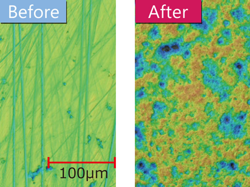 A unique air blasting technology "α-processing" is a surface treatment method that can provide various effects by forming a fine texture.