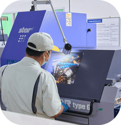 การผลิต Cutting Tools ขึ้นใช้เองภายในองค์กรเราได้จัดตั้งห้อง R&D ด้าน Tool โดยเฉพาะ ซึ่งมีเครื่องเจียร Tool ต่าง ๆ รวมถึงเครื่องมือตรวจสอบครบครัน และดำเนินการออกแบบและผลิต Tool ภายในบริษัทเองโดยคำนึงถึงลักษณะเฉพาะของวัสดุที่นำมาผลิตและเงื่อนไขในการผลิต การผลิต Tool ภายในนี้ช่วยลดต้นทุน อีกทั้งยังสามารถตอบสนองต่อการทดลองผลิตและข้อเสนอแนะได้อย่างรวดเร็ว โดยสามารถปรับรูปร่าง Tool ให้ตรงตามแบบของลูกค้า นอกจากนี้ ยังสามารถพัฒนา Tool ที่ไม่สามารถหาได้จากท้องตลาดทั่วไป โดยจะออกแบบให้เหมาะสมกับรูปร่างของชิ้นงาน เพื่อช่วยลดขั้นตอนการผลิต และลดเวลา Cycle Time ในการผลิตได้อีกด้วย Tool ที่ผลิตภายในจะถูกนำไปใช้งานจริงในการผลิตทันที เพื่อทำการเก็บข้อมูล "ตรวจสอบ ยืนยันให้แน่ใจ และปรับปรุง" ช่วยลดเวลาที่ต้องประสานงานกับหน่วยงานภายนอก ทำให้สามารถปรับปรุง Tool ที่ใช้ในการกลีงได้อย่างมีประสิทธิภาพ นอกจากนี้ เรายังได้สร้างระบบที่สามารถตรวจสอบไม่เพียงแค่รูปทรงของ Tool เท่านั้น แต่รวมถึงการตัดสินใจเงื่อนไขการกลึงไปพร้อมกัน ซึ่งนำไปสู่การเรียนรู้ Knowhow เฉพาะตัวของบริษัทเรา เรายังจัดอบรมให้ความรู้ที่ห้อง R&D อย่างสม่ำเสมอ เพื่อพัฒนาความรู้เกี่ยวกับ Tool และเทคโนโลยีการแปรรูป อีกทั้งยังมุ่งมั่นในการพัฒนาบุคลากรภายในองค์กรให้มีทักษะที่จำเป็นสำหรับการผลิต Tool ภายในบริษัทเองอีกด้วย |