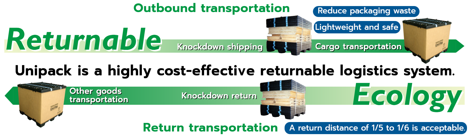 Unipack, as a returnable container logistics system, enables significant cost reductions across all stages of logistics, including packing, handling, transportation, and storage. Rental and custom-made options are also available. |