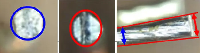 ●自己融着線のボンディング層が完全に融着せず、部分的に残存している。