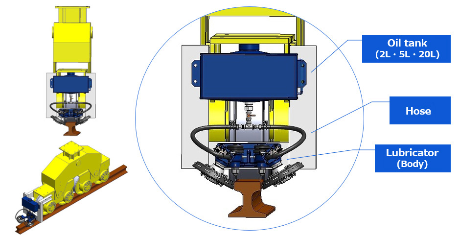 Economical benefits ● The lubrication/maintenance operation used to be performed manually is automated to save manpower. ● The lubricator extends the life of the machine, substantially reducing the replacement cost. ● The lubricator reduces the frequency of replacing wheels and rails, etc., decreasing the downtime. |