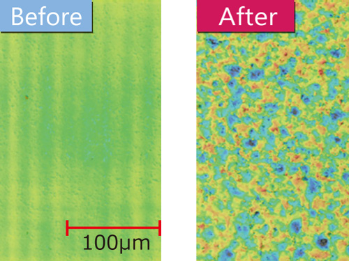 A unique air blasting technology "α-processing" is a surface treatment method that can provide various effects by forming a fine texture.